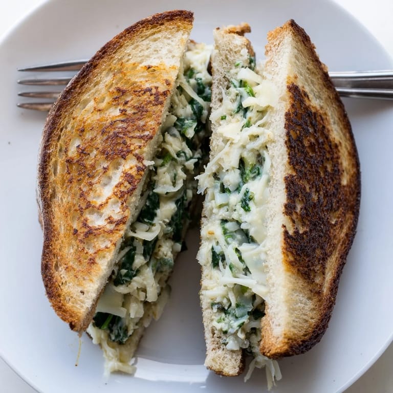 Save to Pinterest A golden, crispy grilled cheese sandwich filled with creamy spinach and artichoke dip, all made easily in the air fryer for a deliciously melty comfort meal.