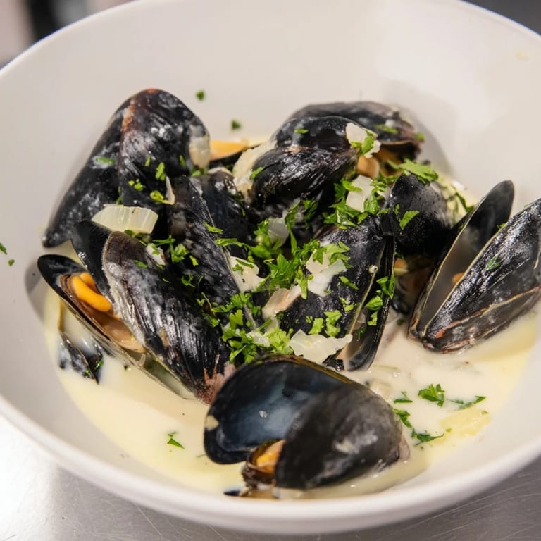 Save to Pinterest Tender mussels steamed in a fragrant, creamy white wine broth with garlic, shallots, and fresh herbs—perfect for a quick yet elegant seafood dinner.