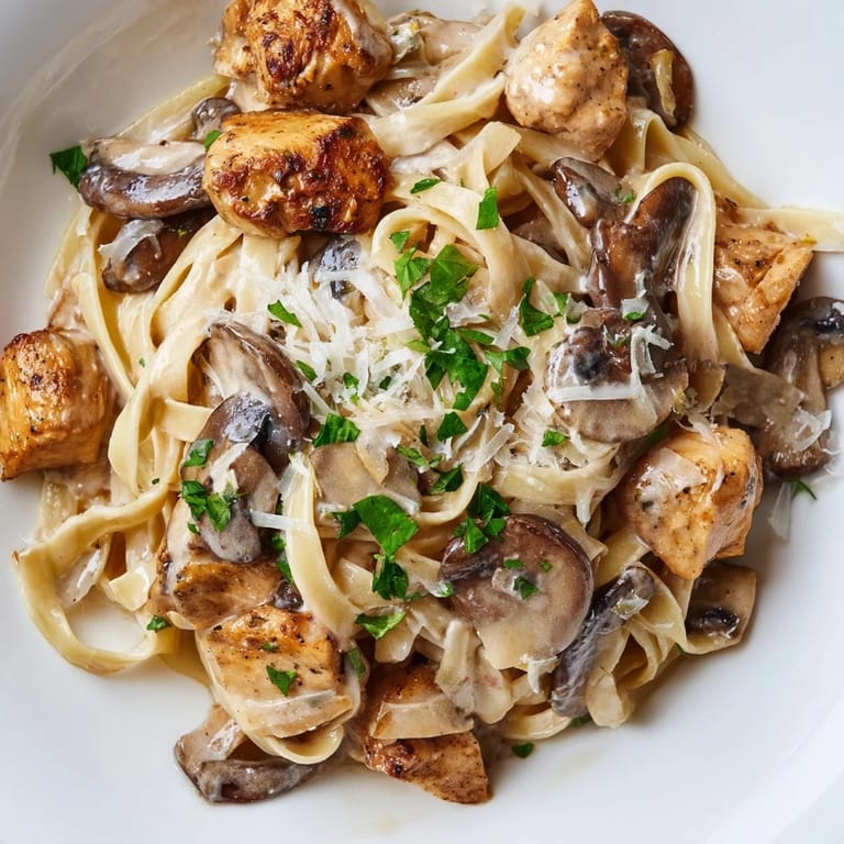 Save to Pinterest There was a Tuesday evening when my kitchen felt too quiet, the kind of night when something warm and uncomplicated was exactly what I needed. I pulled out chicken breasts and mushrooms almost without thinking, and within forty minutes, the whole apartment smelled like butter and garlic in the most reassuring way. That first forkful of creamy pasta told me this wasn't just dinner—it was the kind of dish that makes you feel taken care of, even when you're cooking for yourself.