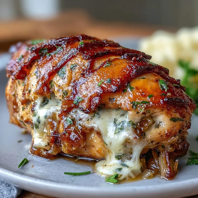Save to Pinterest There's something almost meditative about watching onions transform in a hot skillet—golden wisps curling into themselves, the kitchen filling with that deep, almost wine-like sweetness. Years ago, I was experimenting with leftover caramelized onions meant for soup when I suddenly thought: what if this luxury lived inside a chicken breast instead? That spontaneous idea became this dish, and now whenever I make it, I'm transported back to that small moment of kitchen discovery.