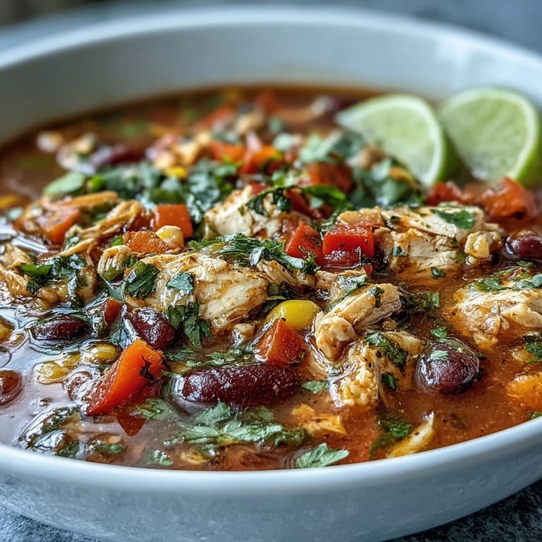 Save to Pinterest There's something about a bowl of soup that makes you feel like you're taking care of yourself, and this chicken taco soup hit me differently the first time I made it on a random Tuesday when I was tired of the same old lunch rotation. My kitchen filled with the smell of toasted cumin and smoked paprika, and suddenly I wasn't just cooking—I was creating something that felt indulgent but still aligned with what my body actually needed. The vibrant bits of red and yellow peppers scattered throughout reminded me that eating well doesn't have to look boring or feel like a punishment. I've made it dozens of times since, and it's become my go-to when I want something hearty without the guilt.
