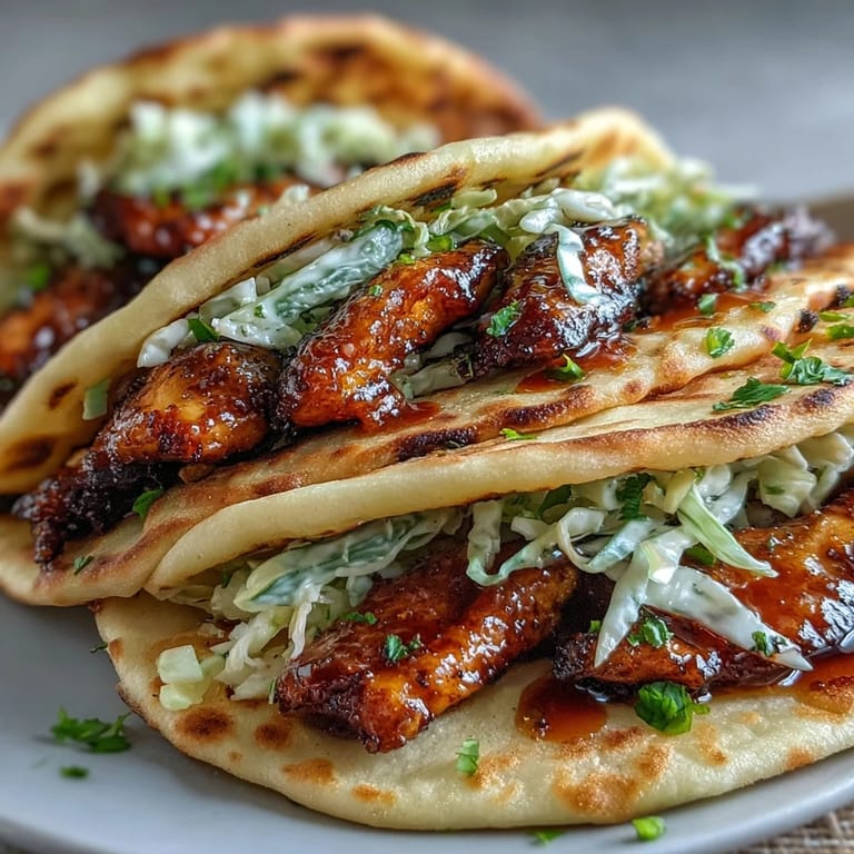 Save to Pinterest My neighbor Marcus showed up one Tuesday evening with leftover naan from his restaurant experiment, and I was standing there with chicken thighs that needed rescuing. What started as improvisation—tossing together an Indian glaze with Mexican-style assembly—became something we couldn't stop talking about. The honey-garlic sauce caught the light as it caramelized, and suddenly we had this unexpected fusion that felt both completely natural and a little bit daring. Now whenever I make these, I think of that accidental discovery and how the best meals sometimes come from having no real plan.