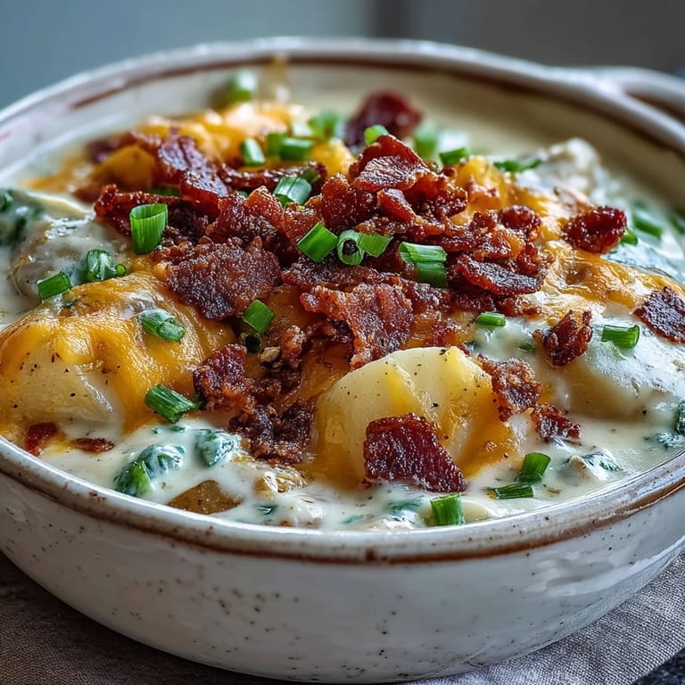 Save to Pinterest My neighbor knocked on my door one Sunday with a pot of this soup, still steaming. She'd made too much, she said, but I think she just knew I needed comfort food. One spoonful and I was hooked: creamy, savory, with little bursts of bacon and sharp cheddar in every bite. I asked for the recipe right there on my porch, and I've been making it ever since.