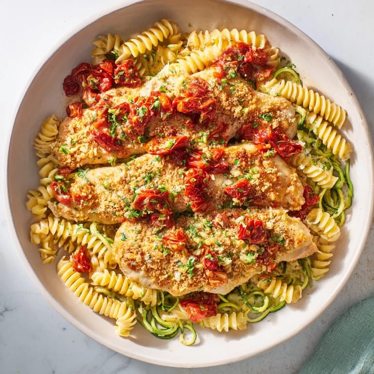Save to Pinterest My neighbor brought over a batch of zucchini noodles one summer, insisting I try them with leftover chicken. I was skeptical about spiralized vegetables replacing pasta, but the moment I tasted how the creamy sauce clung to those tender green strands, I stopped missing the carbs. This dish became my weeknight go-to when I wanted something rich without the guilt. The sun-dried tomatoes add a tangy sweetness that makes every bite feel special.
