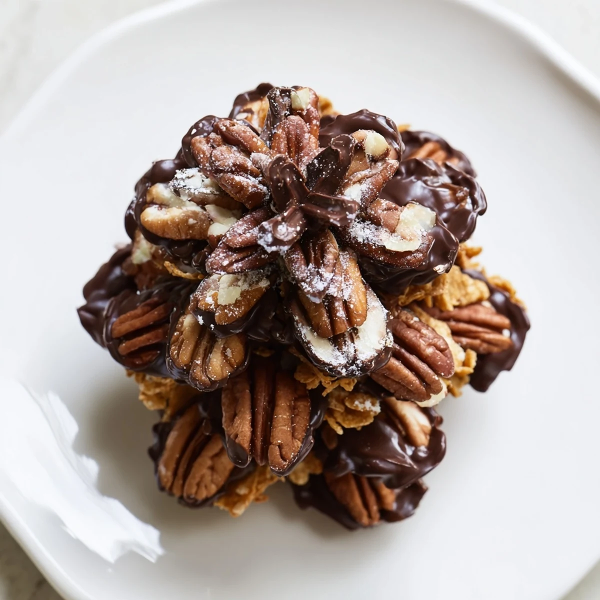 Save to Pinterest A whimsical, crunchy dessert featuring chocolate-coated nut clusters shaped like pinecones, perfect for holiday gatherings or as an elegant woodland treat.