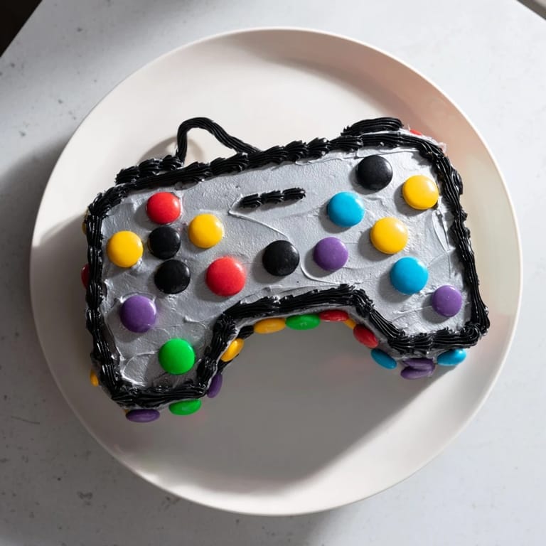 Save to Pinterest A playful, colorful cake designed to look like a classic video game controller, perfect for parties and gaming fans.