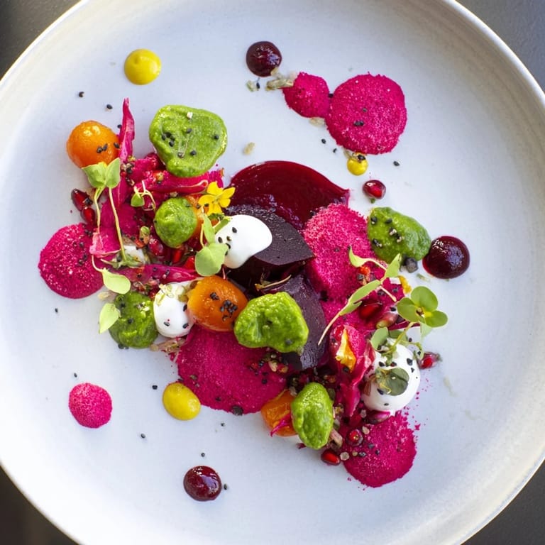 Save to Pinterest I first discovered the magic of pointillism in the kitchen during a late-night dinner party when I realized I'd overcomplicated everything. Standing there with a handful of colorful vegetable purees and beautiful garnishes, I had a moment of clarity—what if I stopped arranging food and started painting with it instead? That night, I created dots and mounds across white plates like a chef-turned-artist, and watching my guests lean in to examine each tiny flavor treasure became the whole point. Every bite was different, every color told a story, and suddenly plating felt like the most honest form of cooking I'd ever done.