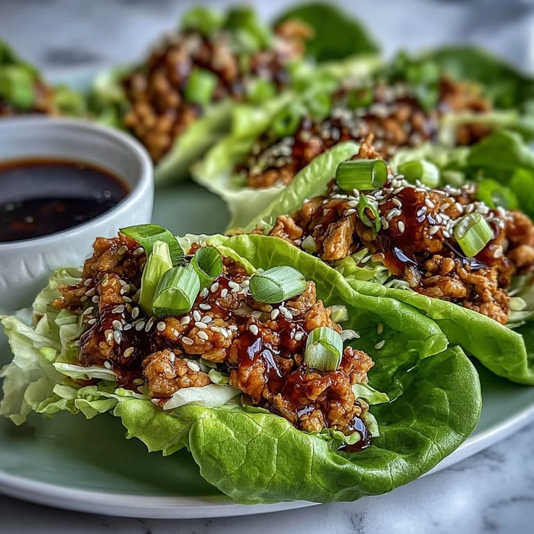 - Lay out your lettuce leaves, spoon the warm filling into each one, and top with a sprinkle of toasted sesame seeds and fresh green onions; the warmth of the filling will slightly soften the lettuce, which is exactly what you want.