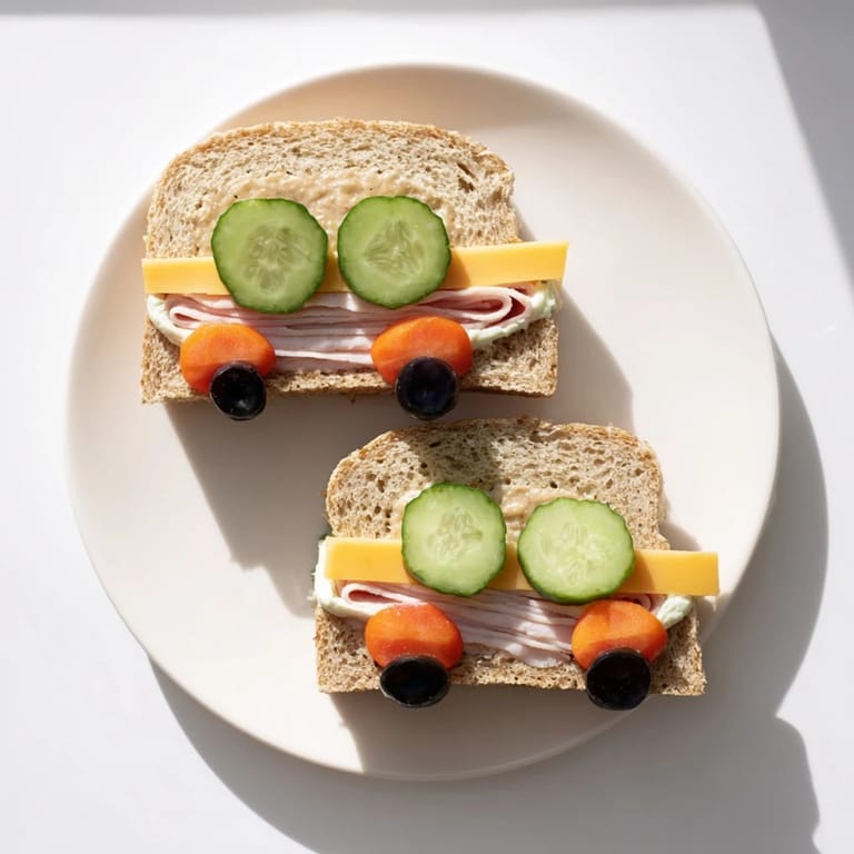 Save to Pinterest A fun, creative lunchbox meal designed to delight kids and adults alike, featuring sandwiches and snacks arranged in the shape of a car—perfect for on-the-go adventures.