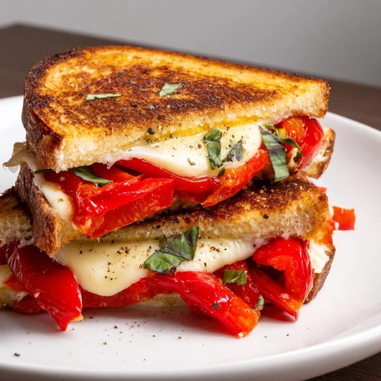 Save to Pinterest One afternoon, I was rummaging through the fridge when I spotted a jar of roasted red peppers I'd forgotten about and a container of fresh goat cheese my neighbor had brought over. Something clicked—why not combine them into a grilled cheese? That first attempt taught me that the sweetness of the peppers balances the tanginess of goat cheese in a way that feels almost intentional, like they were always meant to meet between two slices of bread.
