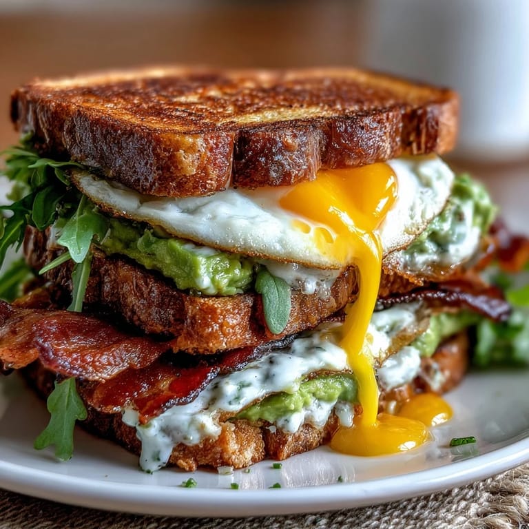 Save to Pinterest Saturday mornings in my kitchen used to feel rushed until I stopped treating breakfast like a checkbox and started layering it like an actual meal. This sourdough avocado BLT with a runny egg arrived on a whim when I had bacon going, an avocado that needed eating, and absolutely no plan beyond "let's not waste this." Two bites in, I realized I'd accidentally created something that felt both indulgent and effortless, the kind of breakfast that makes you forget you have anywhere to be.