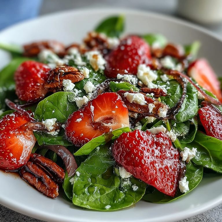Save to Pinterest The first time I tossed together this Spring Strawberry Spinach Salad, it was a sunny weekday evening and my kitchen windows were open to the breeze. I wasn’t aiming for anything fancy—just craving something light and cheerful after a day spent hunched over my laptop. Slicing strawberries felt soothing, their scent a little promise that brighter days were ahead. The sound of candied pecans tumbling onto the cutting board made me smile, and suddenly I realized I’d crafted a salad that was both a celebration and a comfort. Sometimes, I think the best dishes are born from simple impulses and a handful of fresh produce.